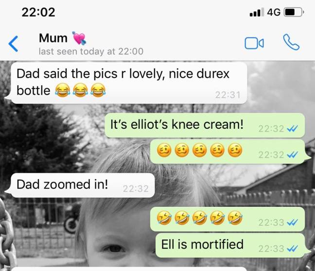 To samo przytrafiło się Kelsey, która udostępniła w mediach społecznościowych rozmowę na WhatsAppie z matką po wysłaniu rodzicom zdjęcia siebie i partnera Elliota, ale dopiero po tym, jak jej matka odpowiedziała, zdała sobie sprawę ze swojego błędu.